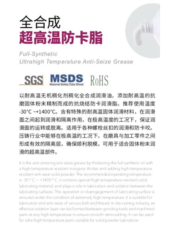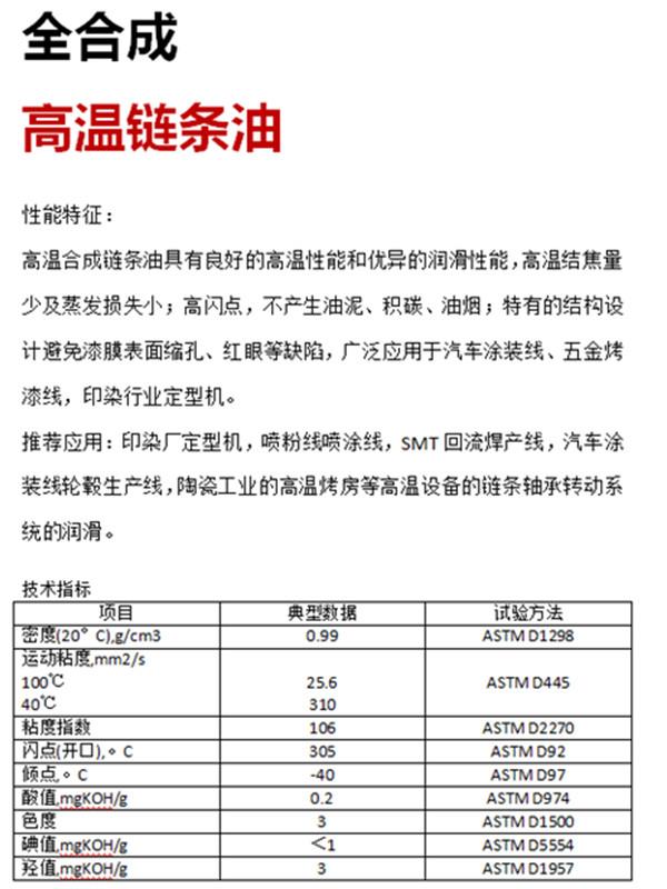 廈門威馬工貿(mào)有限公司位于美麗的花園城市-廈門市同安區(qū),公司專營(yíng)合成高溫油脂系列產(chǎn)品。產(chǎn)品分為:高溫鏈條油、高溫潤(rùn)滑脂、高低溫潤(rùn)滑脂等系列油品。廣泛應(yīng)用于:定型機(jī)、噴涂/噴粉、巖棉等高溫潤(rùn)滑設(shè)備,本品無(wú)煙,無(wú)殘?jiān)?,屬于全合成高溫油系列,可寄樣試用,長(zhǎng)期服務(wù)全國(guó)客戶。